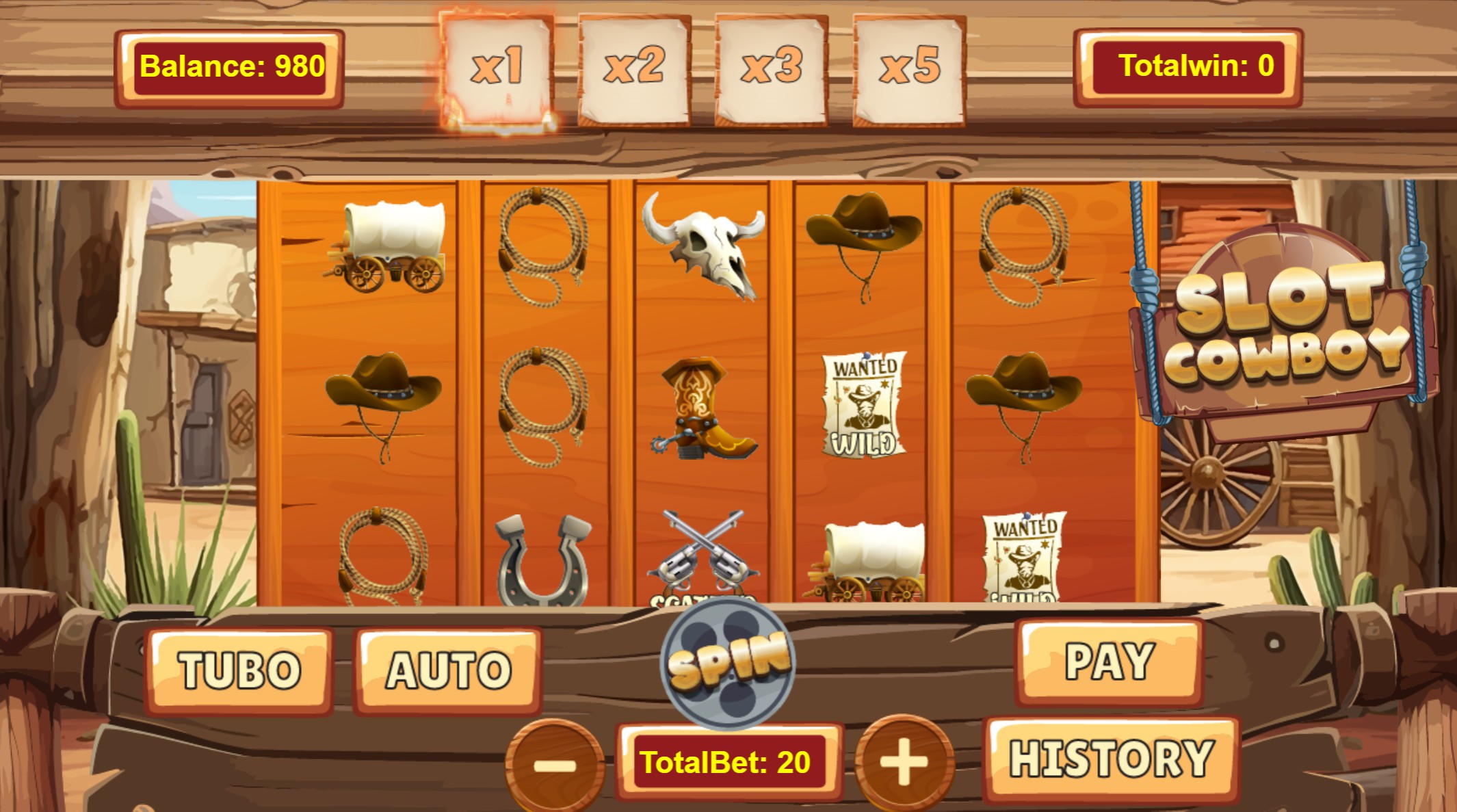Every spin tells a story. Slot Cowboy brings the desert to life with animated symbols, whistling winds, and playful surprises. Follow your balance as it grows, enjoy multipliers from x1 to x5, and immerse yourself in a game where each reel tells a mini Western tale. From cowboy hats to wanted posters, every detail is crafted to entertain. Easy to play, hard to stop — that’s the cowboy way.